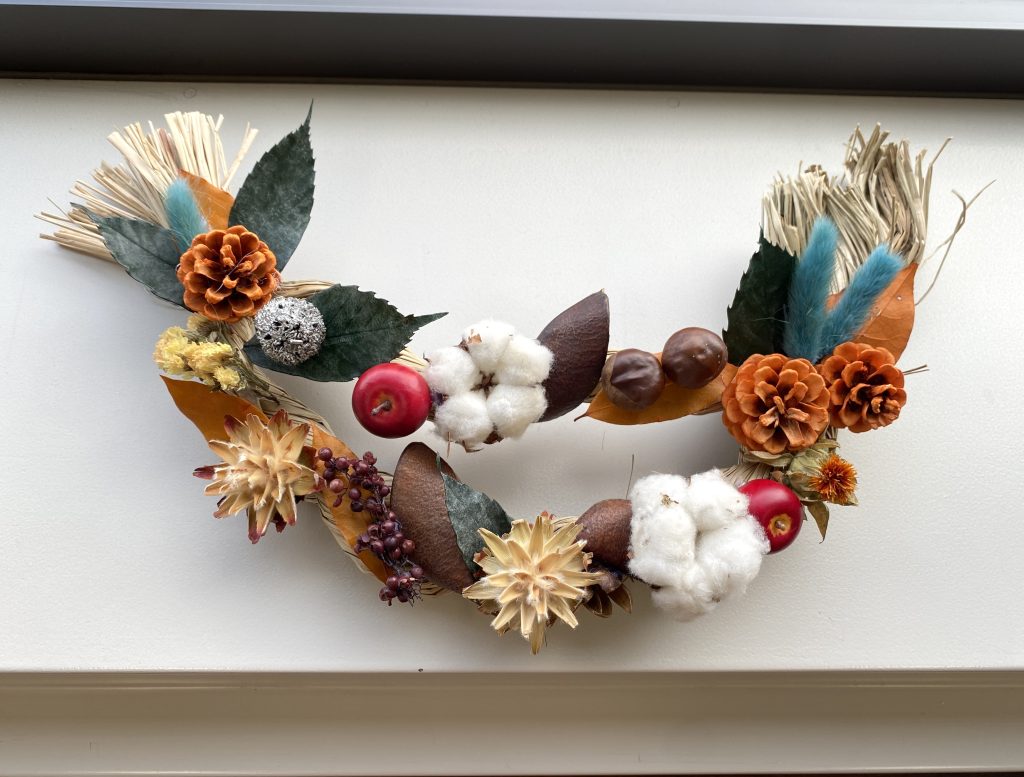 今回のテーマは 「ドライフラワーの壁掛け」。