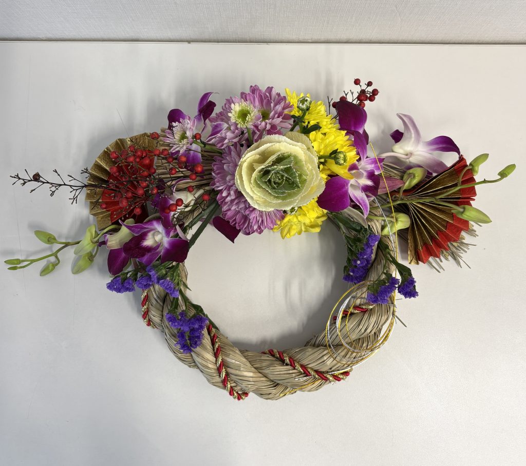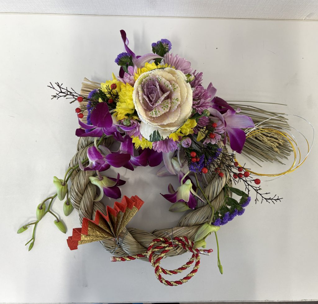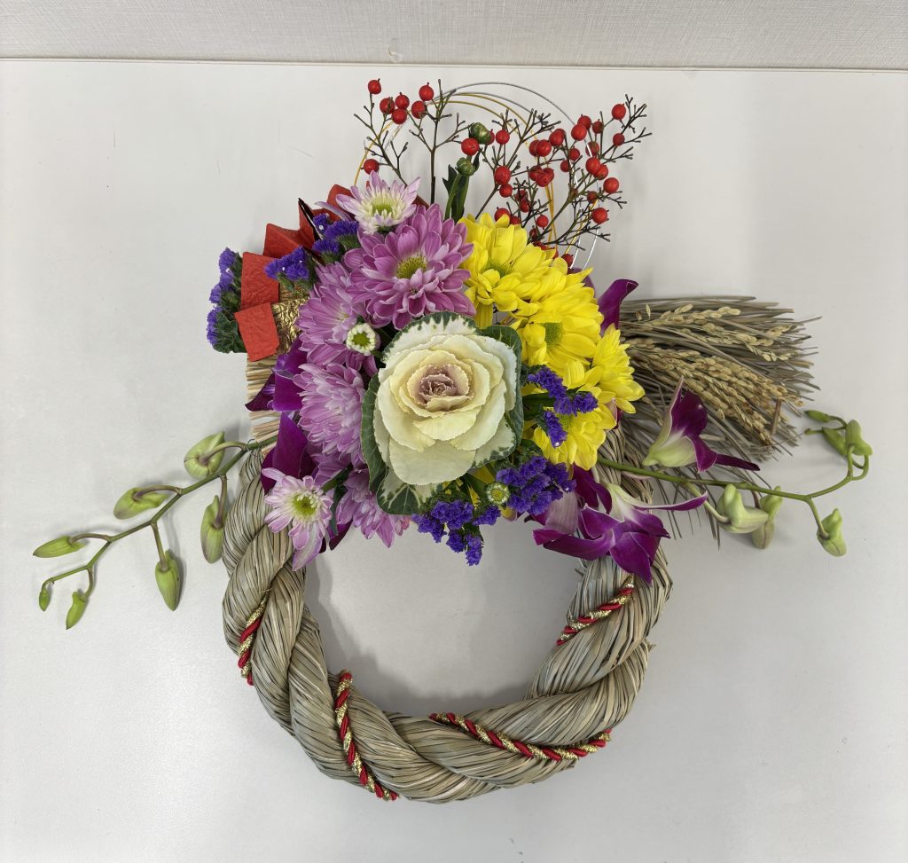 毎年恒例の 「お生花のしめ縄アレンジ」 を