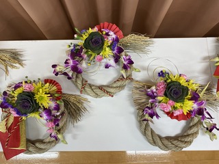 大学の講座での「プリザーブドフラワーのしめ縄アレンジ」講座を担当させていただきました。