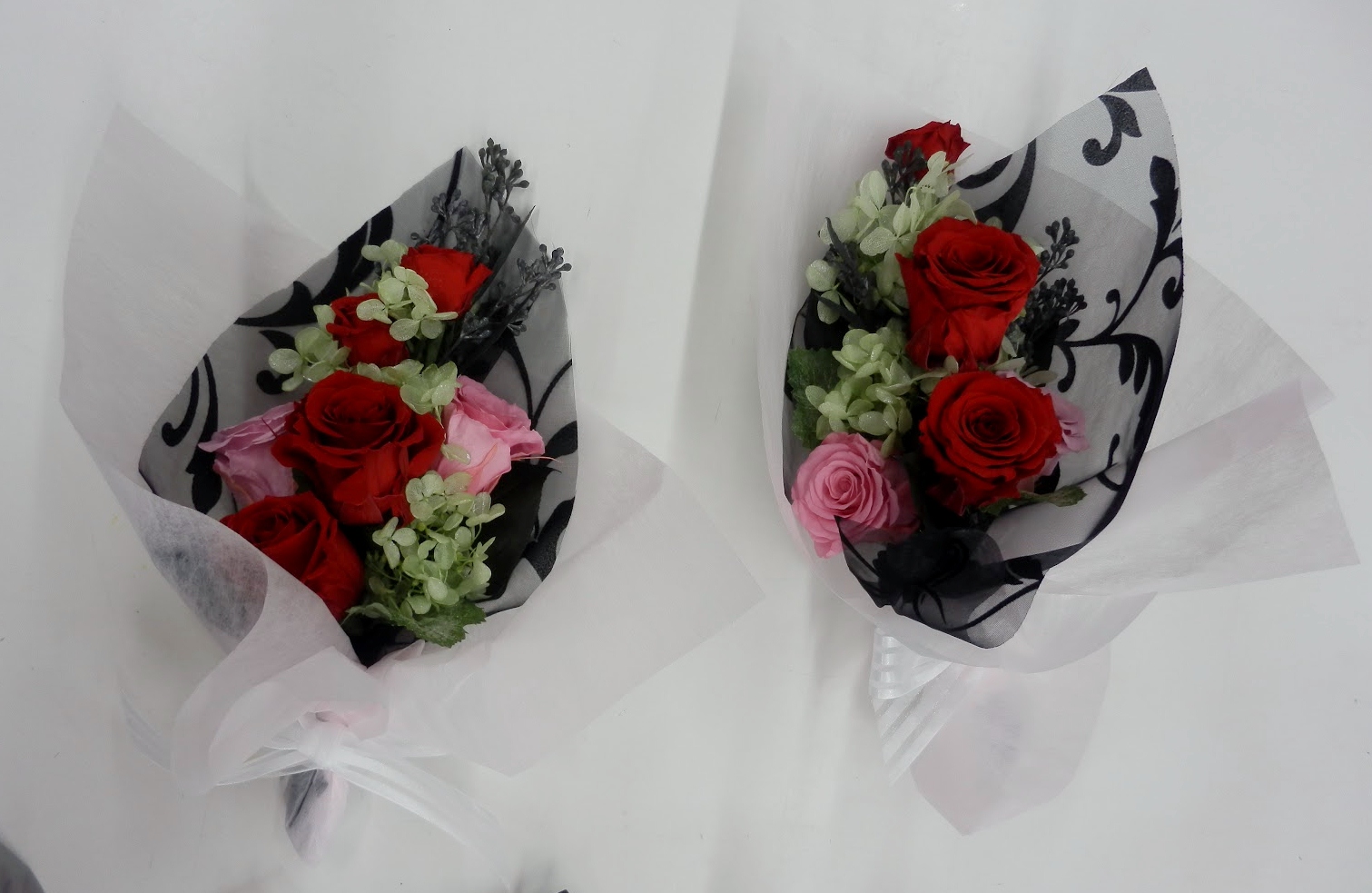 2月14日(火)に朝日カルチャーセンター 中之島教室で1日講座を行いました。ローズメリアの豪華なコサージュ。フォーマルにも付ける事ができます。卒業式には最適です。バラの色を赤、青、白、オレンジ、ピンクから選んでいただきました。
