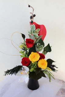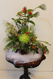 Lシェイプでアシンメタニカルのアレンジはお正月の和のアレンジにはお薦め。