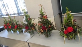 NHK高松教室で午前中お生花のレッスンと午後はプリザーブドフラワーのクリスマスアレンジのレッスンがありました。