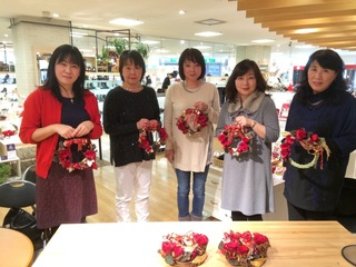 午後はプリザーブドフラワーのしめ縄アレンジでした。