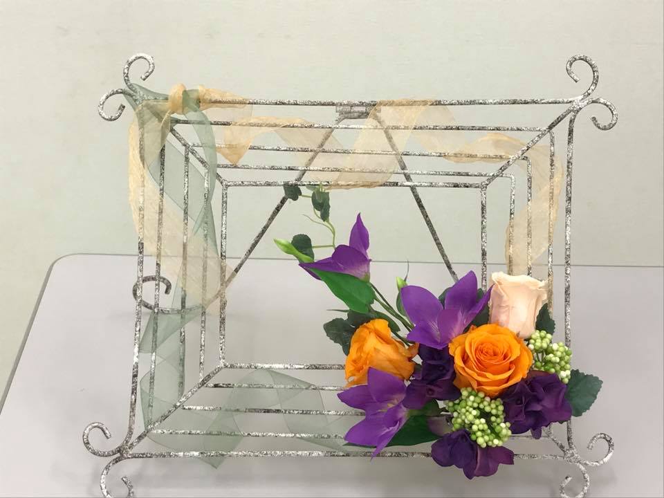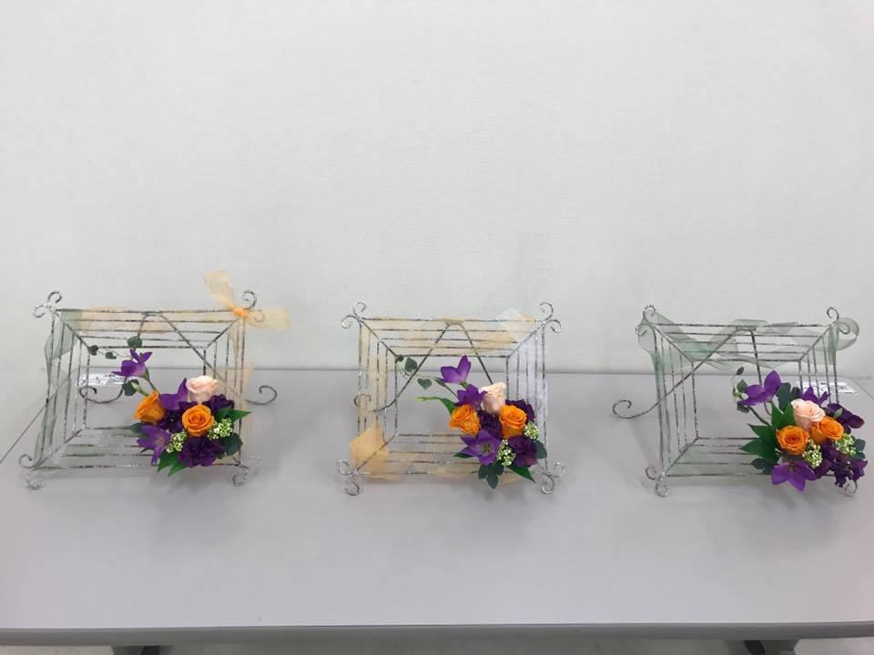 NHK梅田教室でプリザーブドフラワーの仏花アレンジのレッスンがありました。