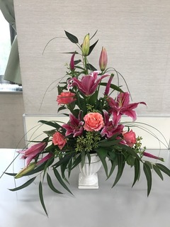 フラワーアレンジメントは慣れた方々ですので、お時間もかからず、綺麗なシェイプに仕上がっています。