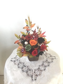 NHK梅田教室でプリザーブドフラワーの仏花アレンジのレッスンのご報告