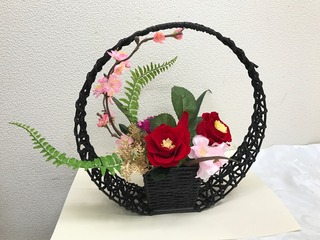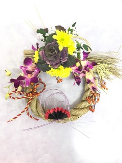 午前中はNHK梅田教室にて「お生花のしめ縄アレンジ」。