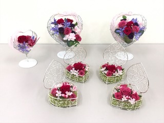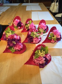 今日の北口ギャラリーのレッスン、「バレンタインのハートアレンジ」。