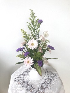 大輪のトルコ桔梗でとてもゴージャスな作品に仕上がりました。