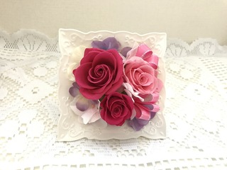プリザーブドフラワーはこれからの季節に長く楽しめるので、とても嬉しいアレンジです。