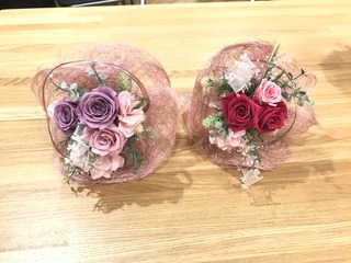 この時季はお生花の持ちが悪い為、プリザーブドフラワーでのレッスンもお薦めです。