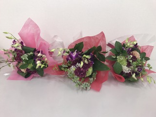 午前の方の作品を写真に撮るのを忘れてしまいましたが、華やかなオレンジ、紫のコサージュが仕上がっています。